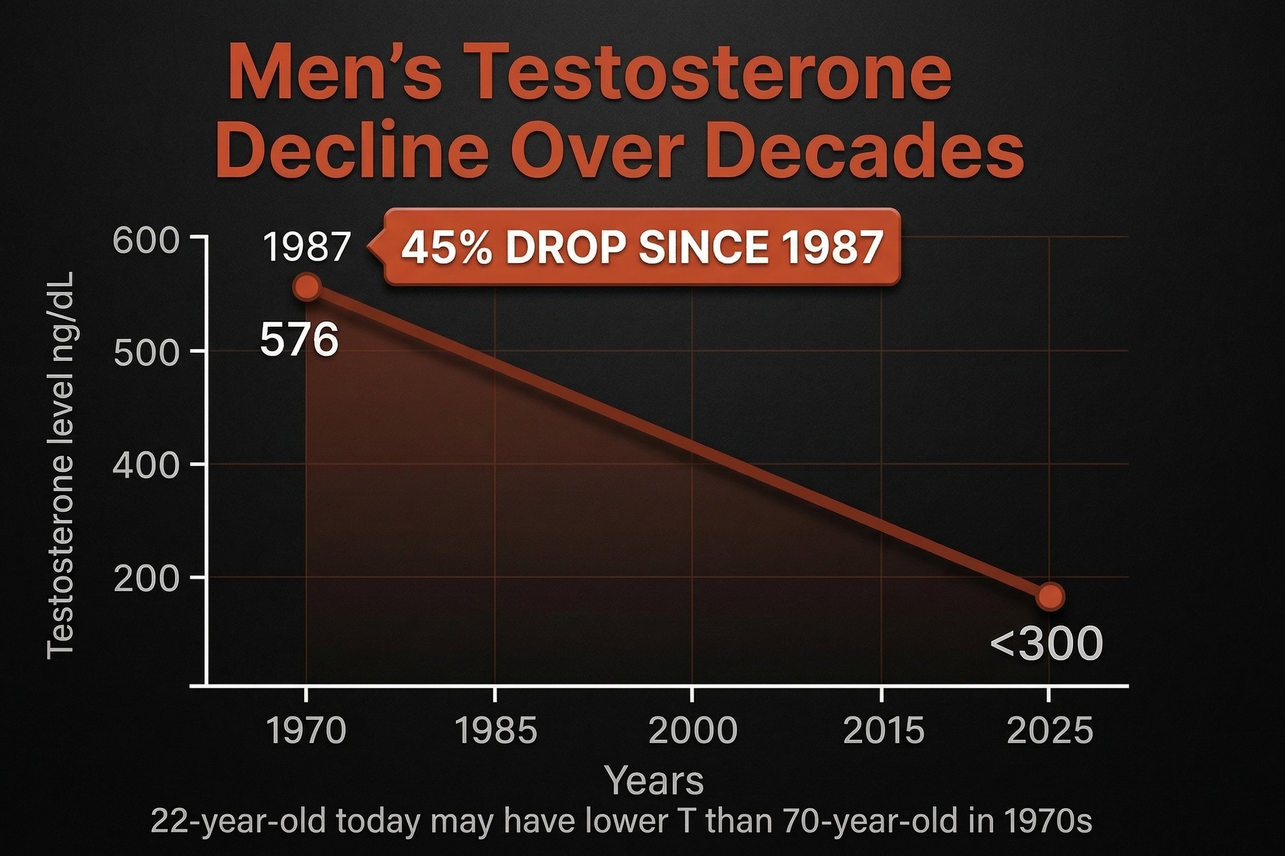 Modern life is a biological trap. Since 1987, male testosterone levels have plummeted, leaving a generation of men with "soft" features, brain fog, and dwindling drive.